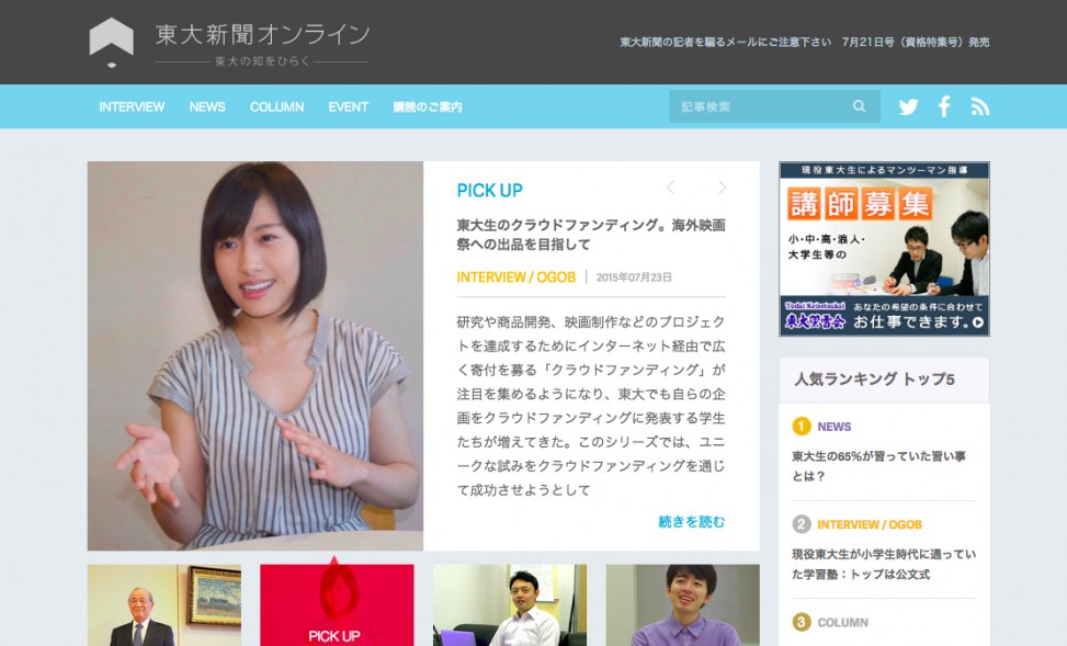 オンライン版東京大学新聞、東京大学新聞社サイト http://www.todaishimbun.org/